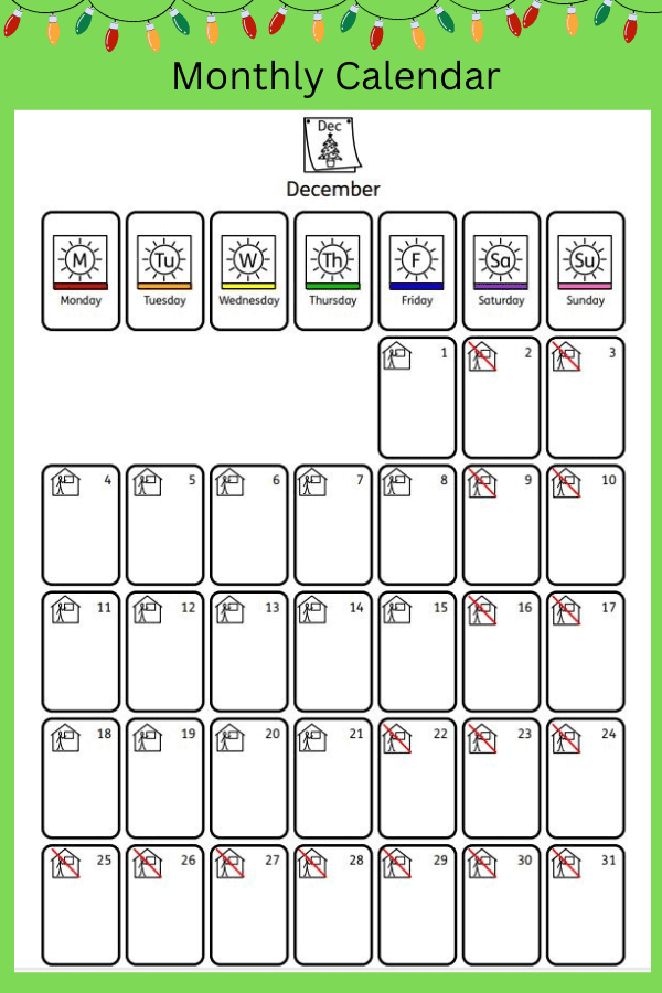 I have put together some visuals which I hope can help your child to know what is happening during the holidays and reduce some anxieties.